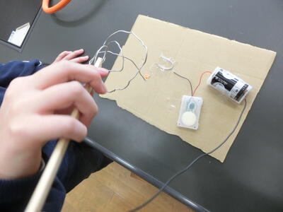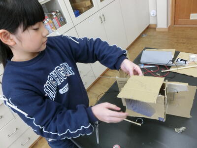 電気の学習で発見したことをもとに、おもちゃを作っているところです。