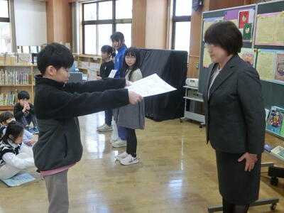 みんな、大きな声で返事をし、堂々と賞状を受け取っていました。