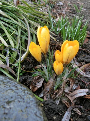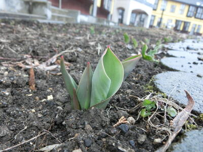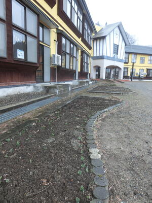 チューリップ 投稿: 副校長 (12:00) 今日は、しとしとと、雨が降っています 外は薄暗くて・・・ ん? おやおや・・・ ぐっと近づいてみると しっかりチューリップの芽が出ていますね♪ いつの間にか、だいぶ大きくなってきています(o^―^o) さらに、花壇の隅っこに、こじんまりと咲いている花を見つけました♪ あんなに雪があったのに いつの間にか春が近づいてきています