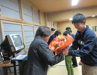 PTA送別会 投稿: 副校長 (14:16) 離任式の日の夜 PTA送別会が開催されました 退職・異動される先生方・卒業生の保護者へ 感謝の花束が贈られます この会には、子どもたちも参加 畳・座布団・・・ なんだか懐かしい光景です 保護者の方々を中心に いろいろと準備をしてくださいました 温かい心がいっぱいでした きっと、子どもたちにとっても こういう記憶は、いつまでも残るのでしょうね