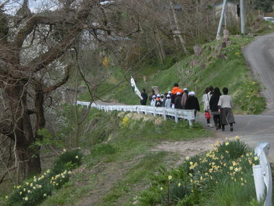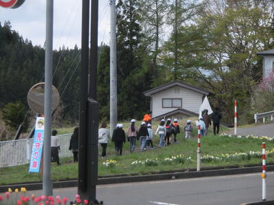 避難訓練 投稿: 副校長 (12:31) 校舎を背に、みんな黙々と歩きます。 最初の避難場所では危険と判断。 次の避難場所まで歩きます。 今回の避難訓練は、土砂災害を想定したものでした。 本校は、大雨が続くと、校舎裏の崖が崩れる可能性があるからです。 子どもたちは、とても真剣に校長先生の話を聞いていました。